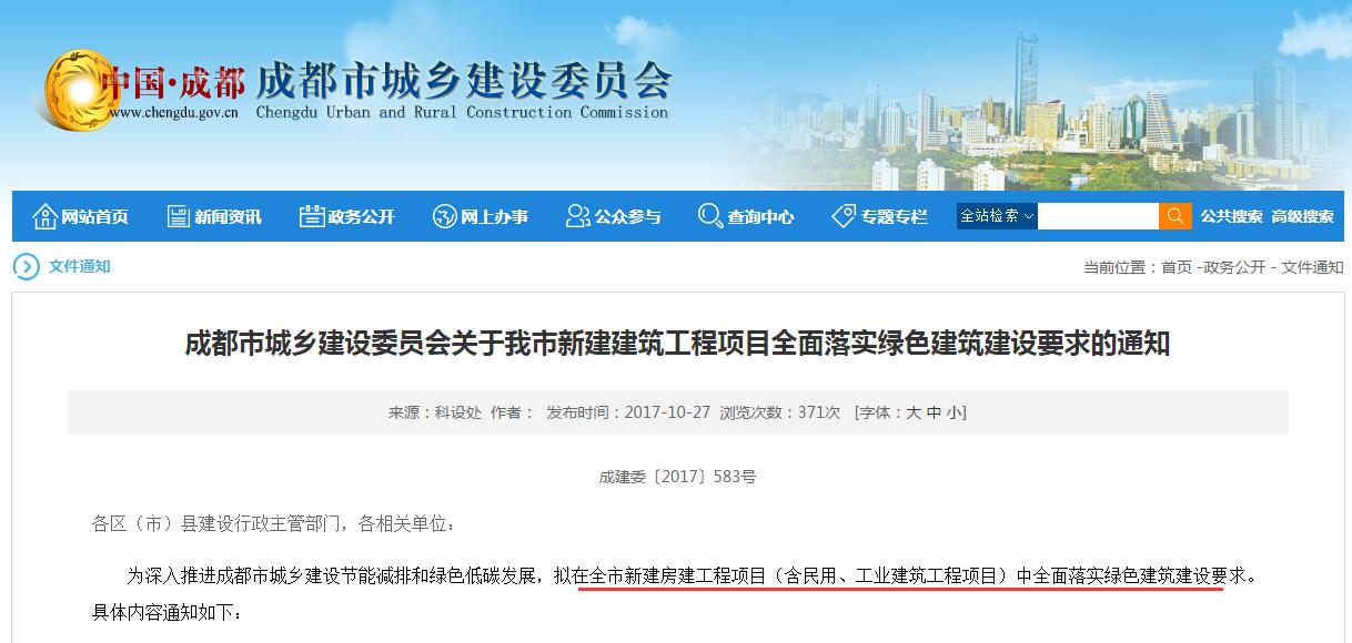 成都市城乡建设委员会关于我市新建建筑工程项目全面落实绿色建筑建设要求的通知