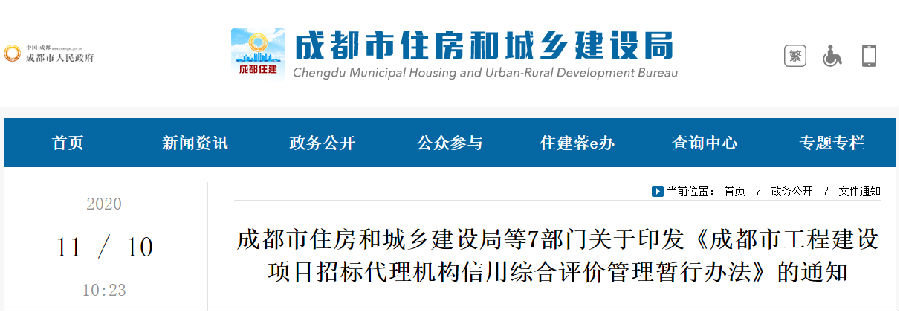 为进一步完善招投标行业信用体系建设,促进招标代理机构诚信经营,根据《国务院办公厅关于加快推进社会信用体系建设构建以信用为基础的新型监管机制的指导意见》(国办发〔2019〕35号)等文件规定,结合工程招投标领域突出问题系统治理工作中发现的典型问题,对现有信用综合评价管理办法进行修订完善,形成《成都市工程建设项目招标代理机构信用综合评价管理暂行办法》,现印发你们,请遵照执行。