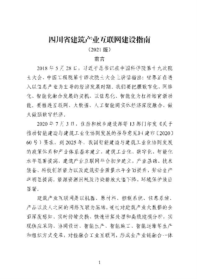 四川省住房和城乡建设厅关于印发《四川省建筑产业互联网建设指南(2021版)》的通知