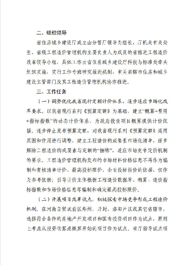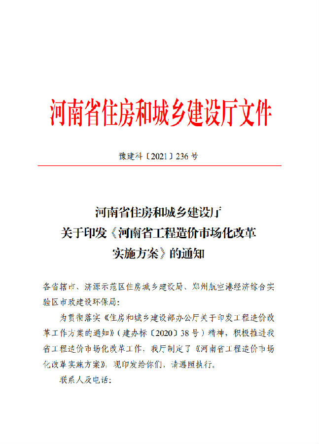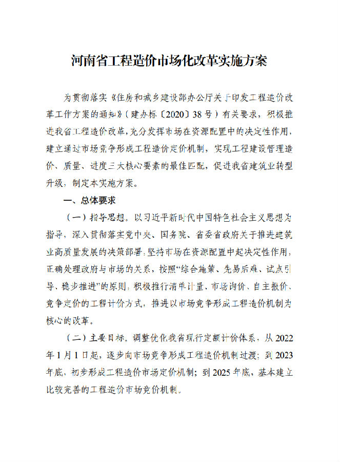 河南省住房和城乡建设厅关于印发《河南省工程造价市场化改革实施方案》的通知