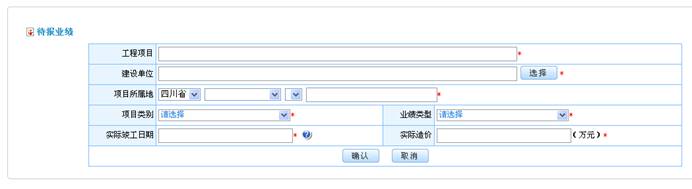 其中工程项目、项目地址、项目类别和实际竣工日期为“待报业绩”处填报(图3所示),项目编号为系统自动生成,均不能修改。