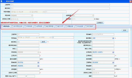 4、中标信息、合同信息、施工图审查、施工许可、质量监督、安全监督、竣工验收,这几个环节的编号(如:中标通知书、审图合格证号、施工许可证号等)填写要注意真实、详细和不重复。