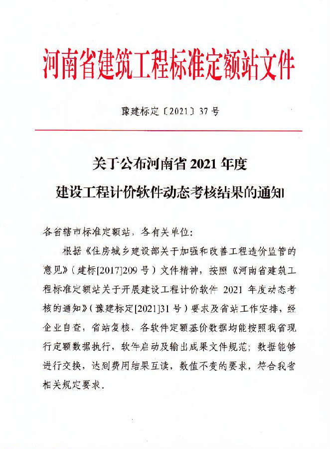 关于公布2021年度建设工程计价软件动态考核结果的通知