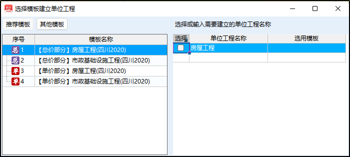 2.建筑工程项目价格清单编制分总价部分和单价部分,软件根据实例项目编制需要设置了不同的工程模板进行区分。
