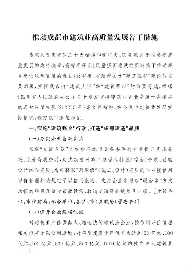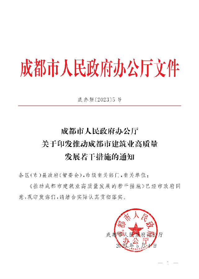 【政策通知】成都市人民政府办公厅关于印发推动成都市建筑业高质量发展的若干措施的通知