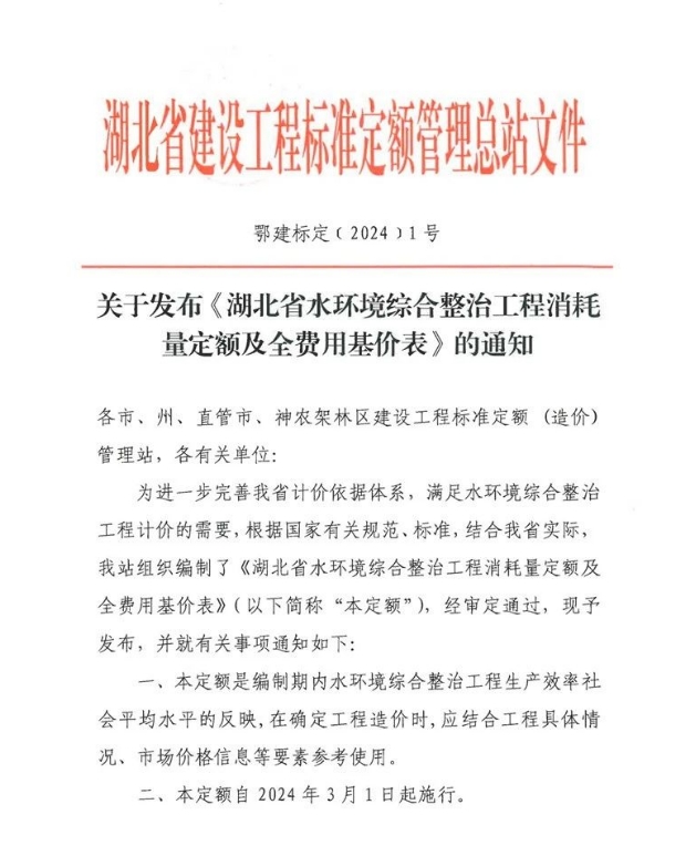 国内首次!湖北省水环境综合整治工程定额在...