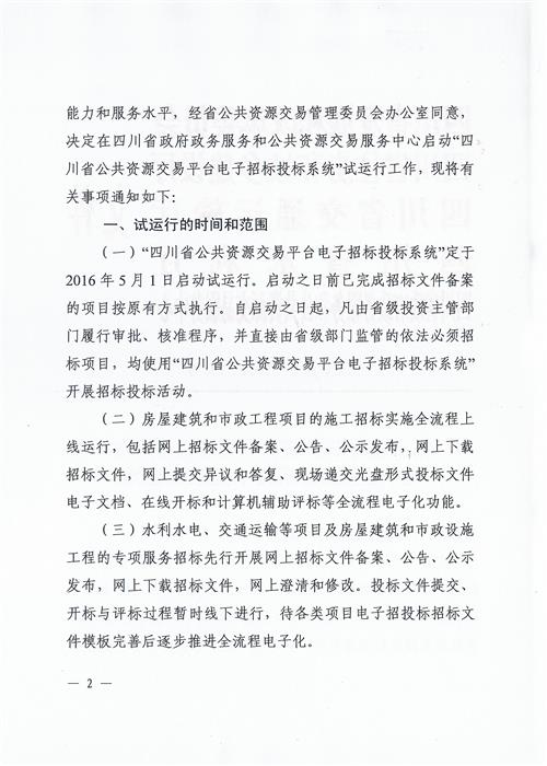 128号 关于启动“四川省公共资源交易平台电子招标投标系统”试运行的通知