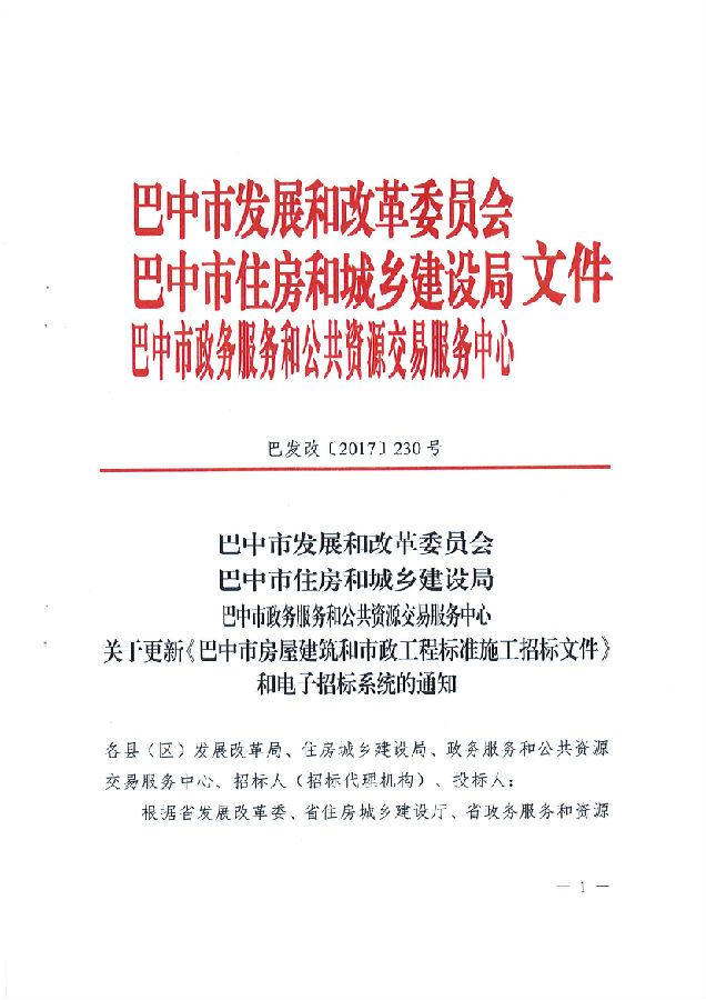 转:关于更新《巴中市房屋建设和市政工程标准施工招标文件》和电子招标系统的通知