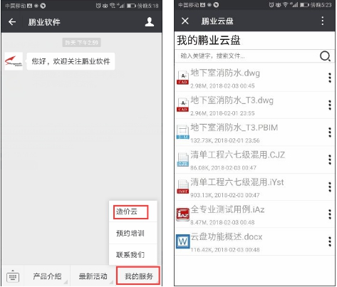进入“鹏业软件“公众号后,选择 "我的服务"→"造价云"即可查看云端数据