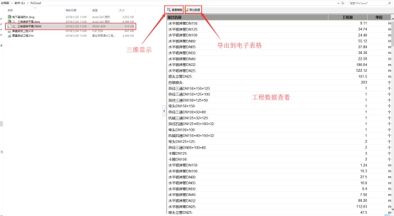4) 用户可以通过Pbim文件预览三维模型,也可以直接导出工程量数据;