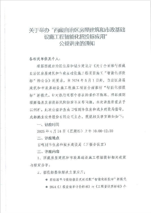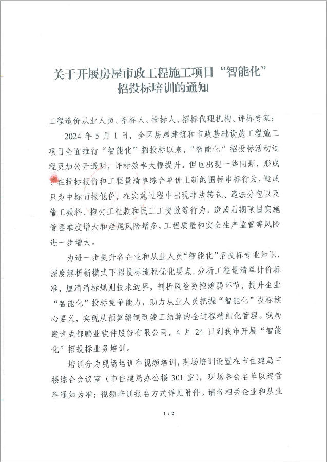 关于开展房屋市政工程施工项目“智能化” 招投标培训的通知