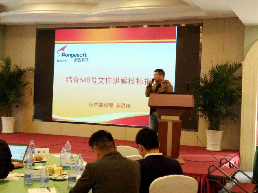 茶歇后由成都鹏业软件工程造价部的高级培训讲师李昌伟先生为大家讲解招投标系统为造价同仁及其合作伙伴带来了哪些便利,简单阐述了“CJZ数据接口”在招投标中的应用、分享CJZ招投标文件编制的注意事项等,未来鹏业软件的招投标系统会更加完善,专业,方便,给更多的造价人带来更多的便利。