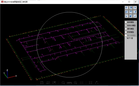 一键识别水系统,智能提取管径。消火栓、给排水识别、操作模式完全一样。在模型中可根据实际情况对管道翻弯、高差进行处理,翻弯与高差所形成的立管模型与工程量软件自动生成,即使较为复杂的泵房也能轻松的处理。