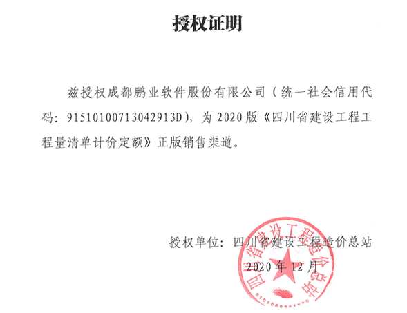 我公司获四川省建设工程造价总站授权