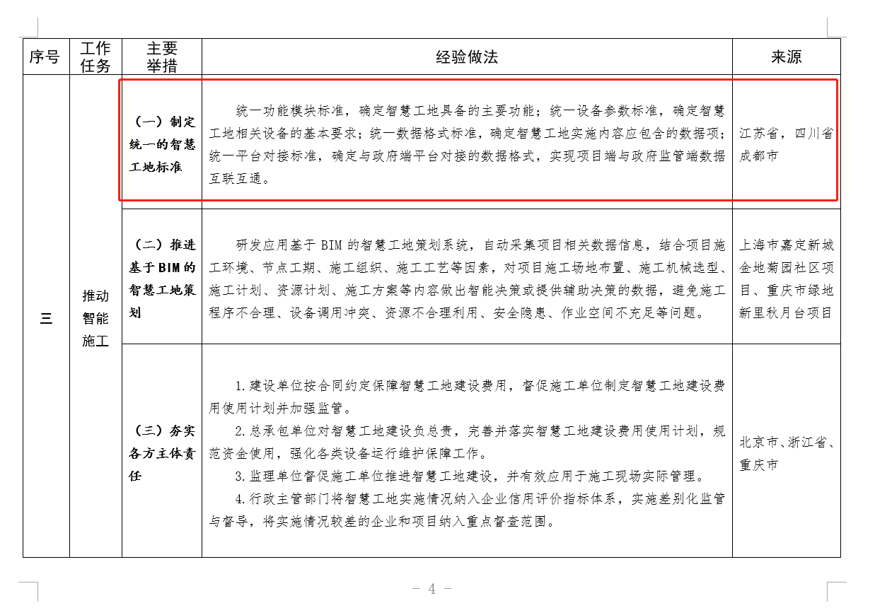 《清单》中将智慧工地建设应用经验收录,并对对智慧工地的实施与应用的经验做法整理总结。
