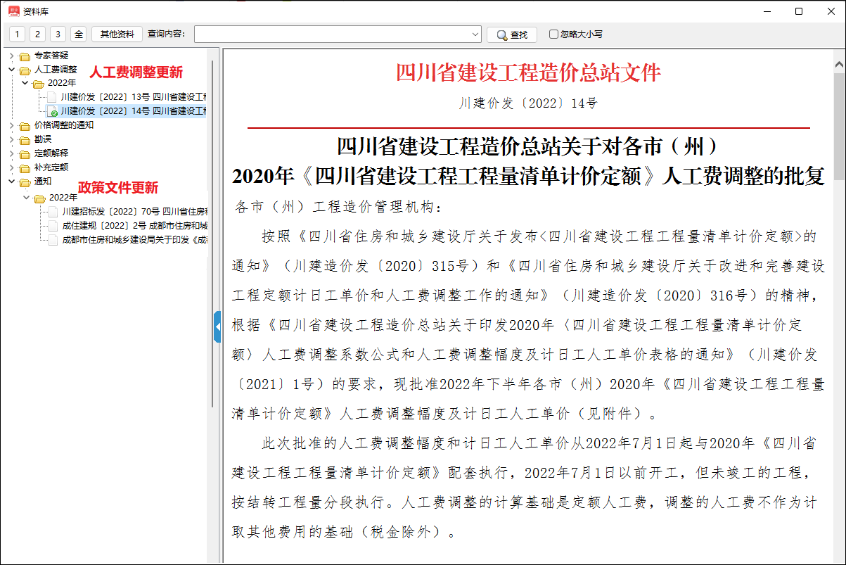 针对新的人工费调整文件,鹏业软件已发布在线升级,请使用“鹏业云计价i20(四川)”、“鹏业云计价i20(四川轨道)”和“鹏业云计价i20(四川机场)”的客户及时进行在线升级,以便对人工费进行更好的调整;同时可在软件里资料中心查看最新的政策文件。