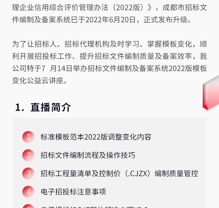 成都市招标文件编制及备案应用系统公益云讲座