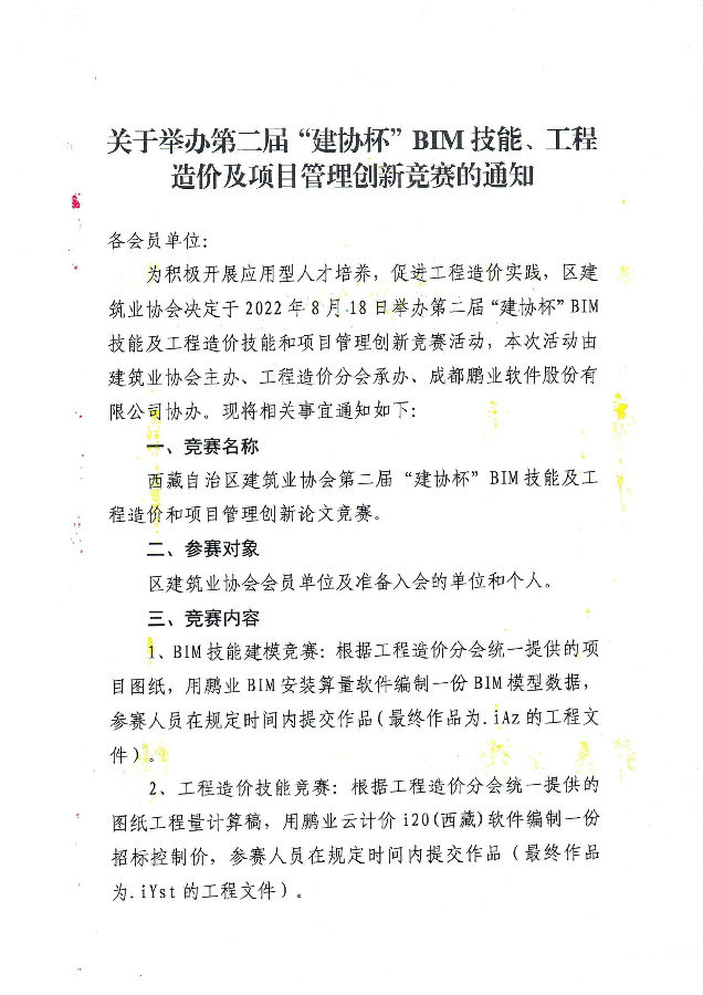 关于举办第二届“建协杯”BIM技能、工程造价及项目管理创新竞赛的通知