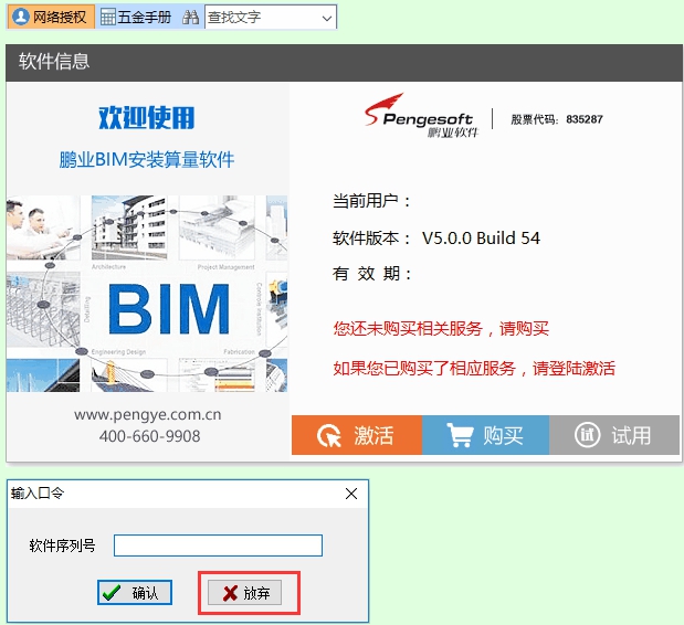 操作描述:软件右上角,点击“网络授权”按钮,将软件切换至网络授权版本,点击激活按钮,微信扫码登陆,登陆成功即可授权,授权成功后重启软件,不需要输入口令,点放弃按钮