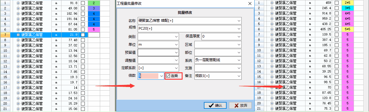 1. 批量修改工程量倍数时,可在原有基础上进行倍数的连乘