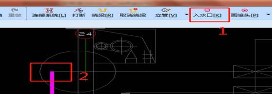 (3) 找到正确的入水口(截止阀位置):单击画入水口1,选择相应的位置点画2。