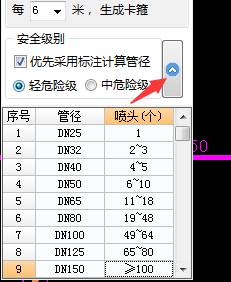 5. 设置计算规则:软件默认的管径大小与喷头数量之间的对照关系。