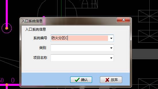 (4) 输入相应的入口信息:例如防火分区C,根据设计图上的标注。
