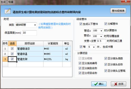 (3) 选择是否需要刷油,保温、支架等,单击确认。