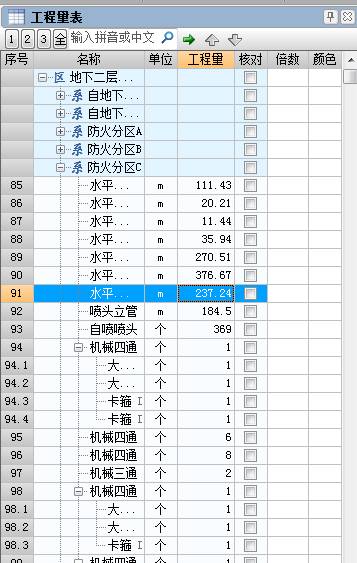 (4) 在左侧的工程量表就可以看到整个喷淋的工程量: