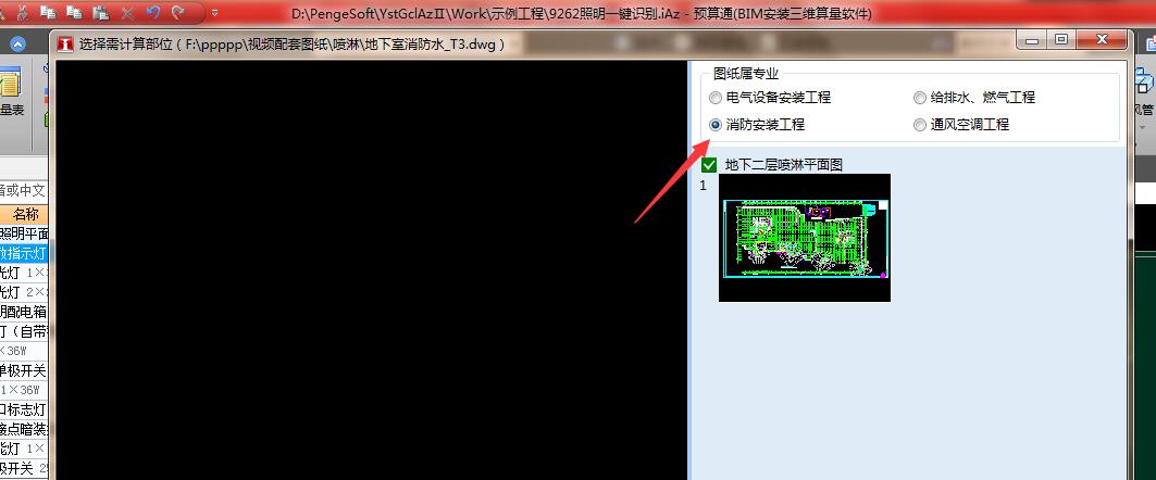 2. 选择喷淋专业的图纸,单击确认,选择相应的专业。