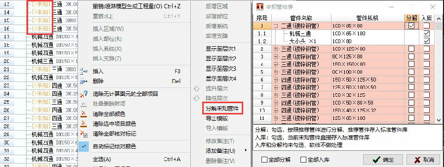 本次对该功能进行了优化,新增了入库选项,用户也能自由的修改分解状态下系统推荐的管件信息;