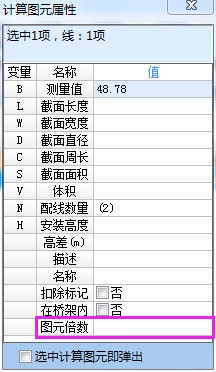 选中管线,右键属性中设置单个管线图元倍数,设置了倍数的项工程量项显示为橙色,在工程量表的计算式中即可定位到该项上;