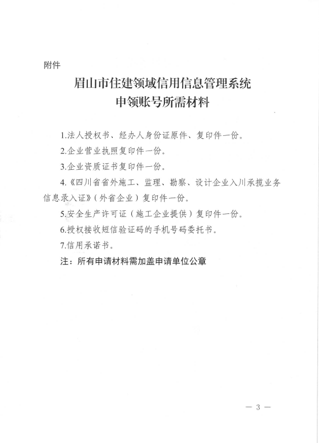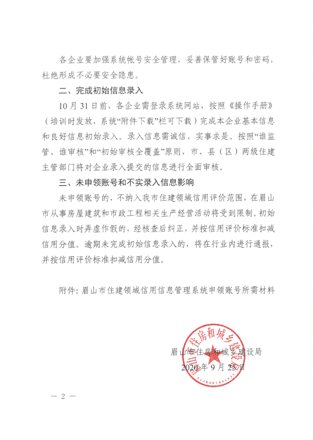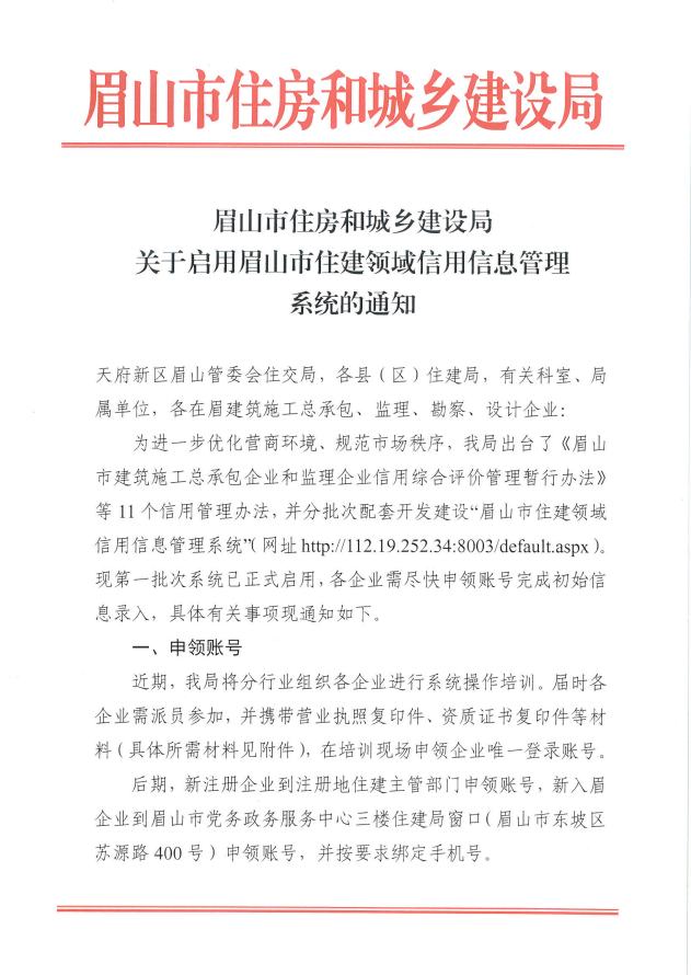 眉山市住房和城乡建设局关于启用眉山市住建领域信用信息管理系统的通知