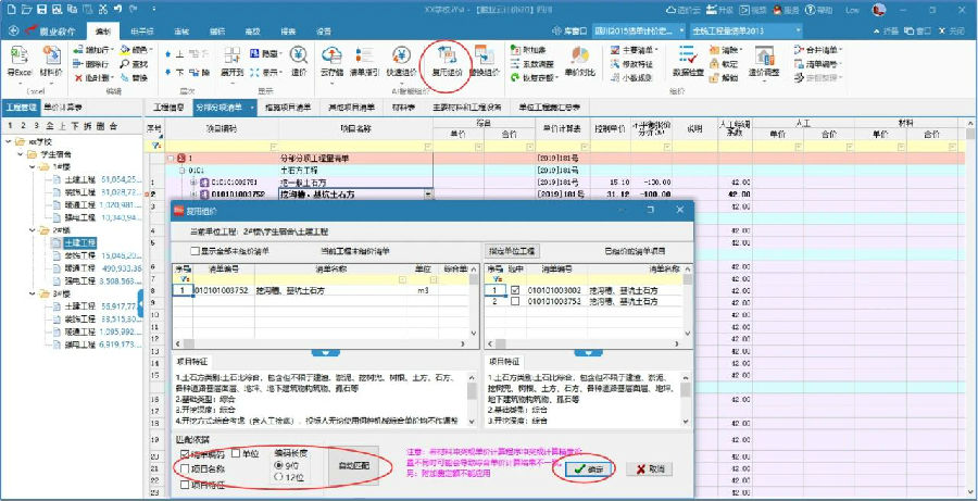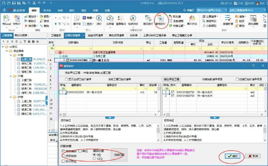 在造价编制过程中,同一工程项目,单体很多,每个单位工程清单子目类似,当组价完一个单位工程的清单子目,剩下的清单想借用其组价内容,就可以通过灵活运用“复用组价、替换组价”功能快速完成组价。