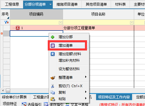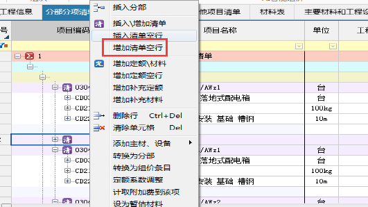 定位在已有清单或分部行,点击鼠标右键选择增加清单空行,输入清单编码,例:房屋建筑与装饰工程,01B001开始,然后输入清单项目名称,单位,项目特征及工作类容等