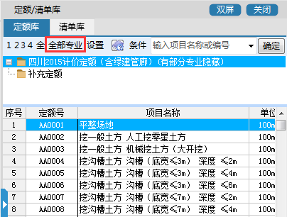 需要展示全部专业,就点全部专业,就会切换成展示全部定额专业