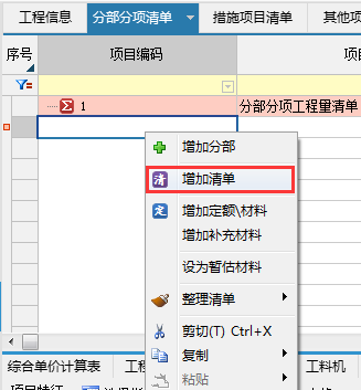 1、清单空行处,点击鼠标右键增加清单;