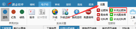 “设置”功能用于设置常用定额库,点击按钮后名称变为“保存”,勾选需设置为常用的定额库,点击保存即可,如下图所示: