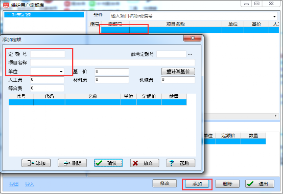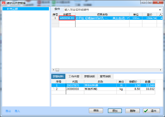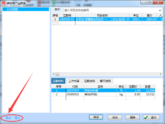 补充定额库里面的定额可以导出和导入。方便在其他电脑上使用(注:补充定额库导入软件后,需要重启软件才能看见)