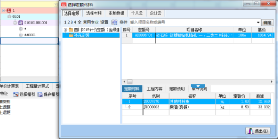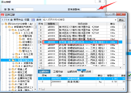 2、选择相对应定额,然后点确定,完成定额录入