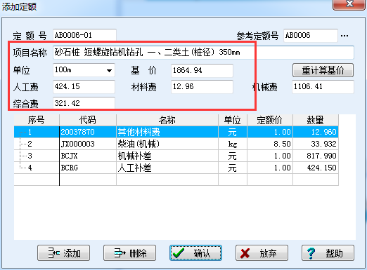 然后根据实际情况对参考定额进行修改,修改好后点确定