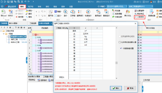 3.应用小数规则后,原清单工程量不能保留,请备份后执行