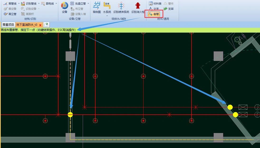 ③生成套管(生成的套管和相交的管规格一致需要手动修改其规格)