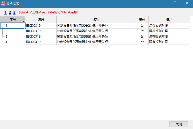 3. 定额转换成功后会有相应的提示并且未转成功的定额有颜色标记。