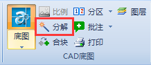 将图纸调入到安装算量软件中后单击CAD底图工具栏中的分解底图命令