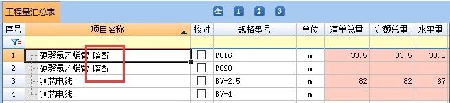答:配管明配、暗配在识别电气系统的时候软件会自动识别,若未识别到,需要按照设计图手工输入到敷设部位中,否则汇总工程量的时候不能区分出来。识别完成后无论是生成回路信息,还是工程量的汇总都能区分出是明配还是暗配。