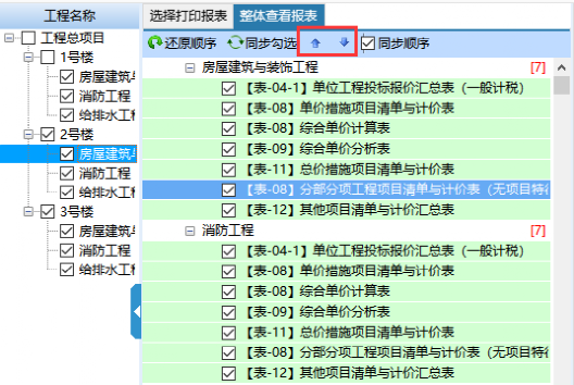 在整体查看表里可以对勾选的表格进行查看,也可以对勾选表格的顺序进行调整。点击上下移动按钮即可调整表格的顺序。