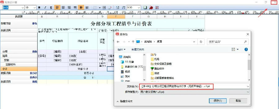 3.3 报表修改后,点击关闭窗口,按默认的保存路径,在弹出的对话窗口选择保存表格。