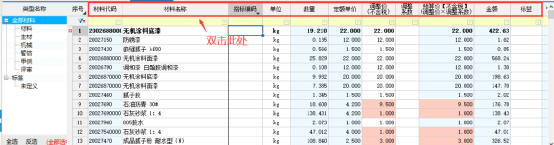 首先,在汇总材料表选中需要合并的材料,右键选中合并材料: