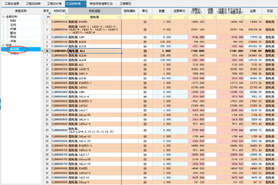 在标签列,把需要的材料打上标签,就可以对这些材料进行管理和统计,比如配电箱: